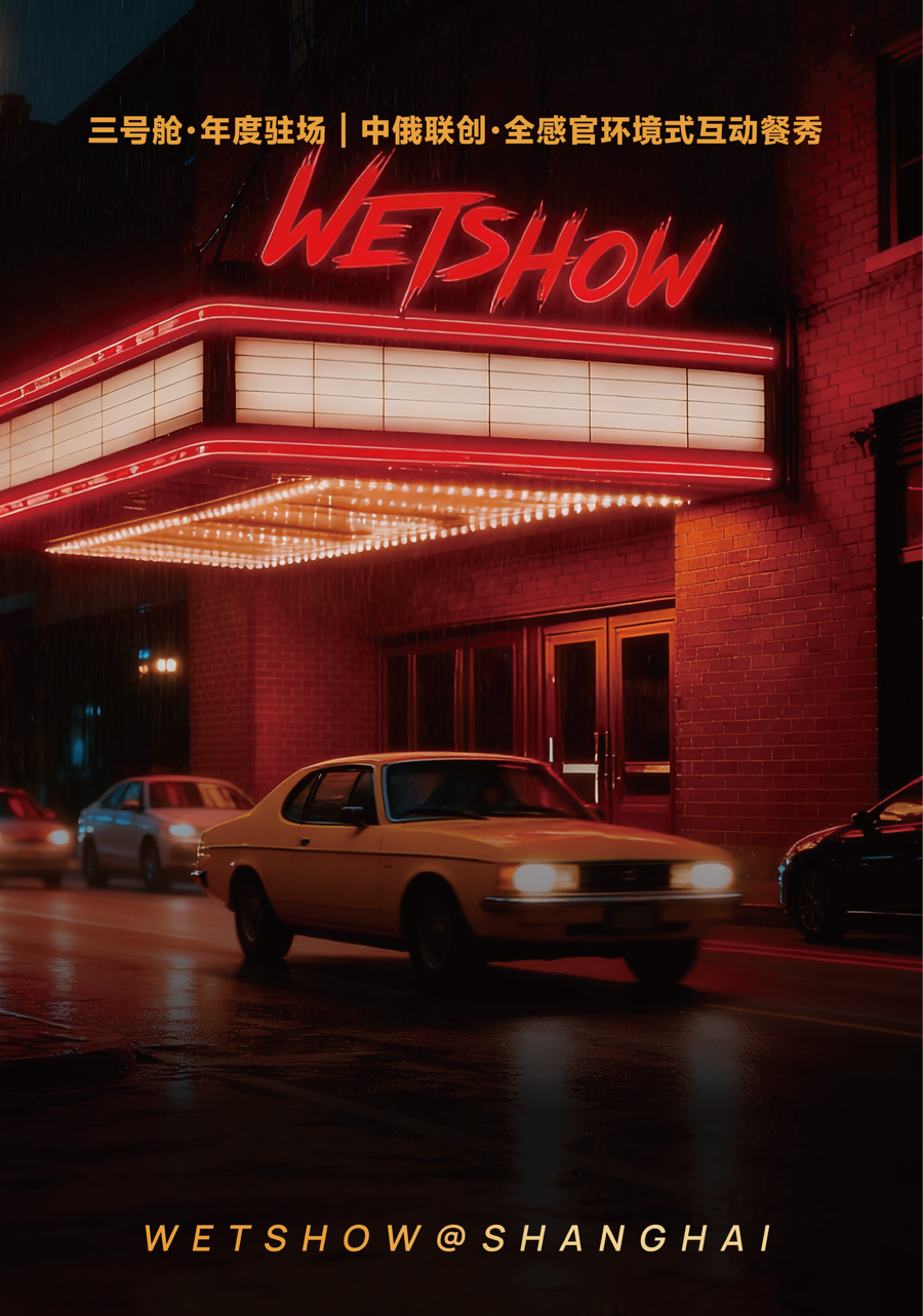 三号舱年度驻场|中俄联创·全感官环境式互动餐秀《Wet Show》,通过音乐、舞蹈、灯光、气氛、美酒、美食和沉浸互动提升观众体验。作品将部分关键情节推动的主动权交给观众。例如,观众可以决定何时触发“下雨”效果,也可被邀请登台与演员一起“淋雨”等。