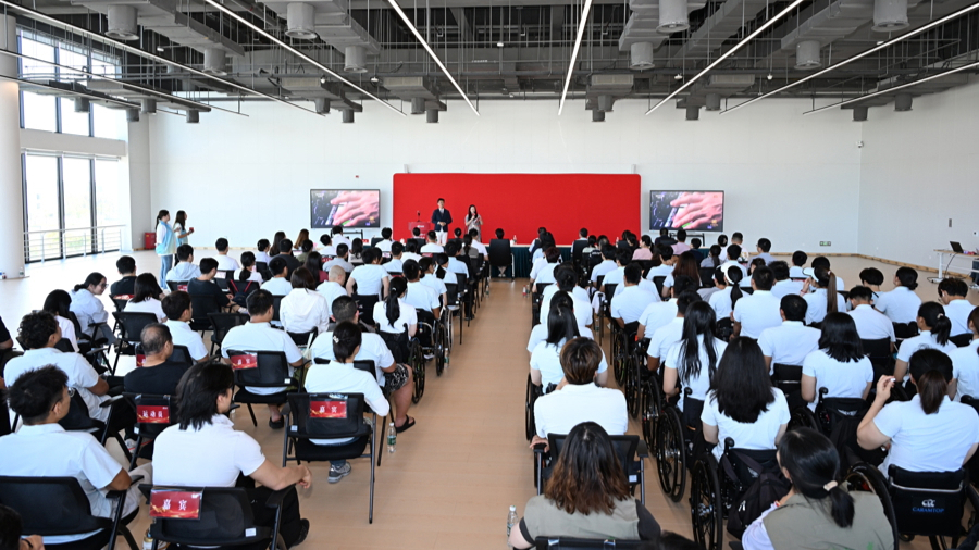 除了两名残奥冠军的演讲,上海体育宣讲团志愿服务队的成员还声情并茂地分别宣讲了奥运冠军樊振东和覃海洋的故事。他们冲破逆境、突破自我的经历,引起了在座几十名残疾人运动员的共鸣。无论是健全人还是残疾人从事体育运动,竞技体育的精神都是一样的,奥运冠军与残奥冠军不断追求卓越的奋斗历程,值得所有人学习。