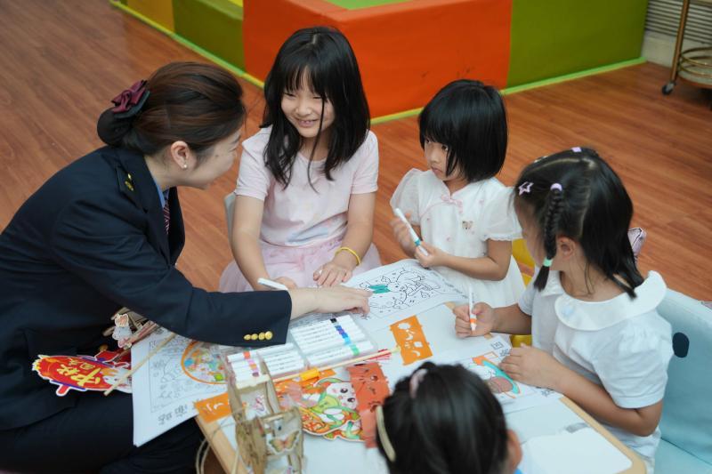 旅客候车时还能猜灯谜,几十条灯谜悬挂在墙面上,涵盖中秋习俗和铁路知识。在诗词环节,工作人员围绕“咏月”诗词进行接龙,从“但愿人长久”到“千里共婵娟”,朗朗诗声让候车时光充满文化韵味。在绘画环节,工作人员提前定制了含有月亮、玉兔、高铁等元素的图本,现场和小朋友一起用画笔描绘出“心中的色彩”。